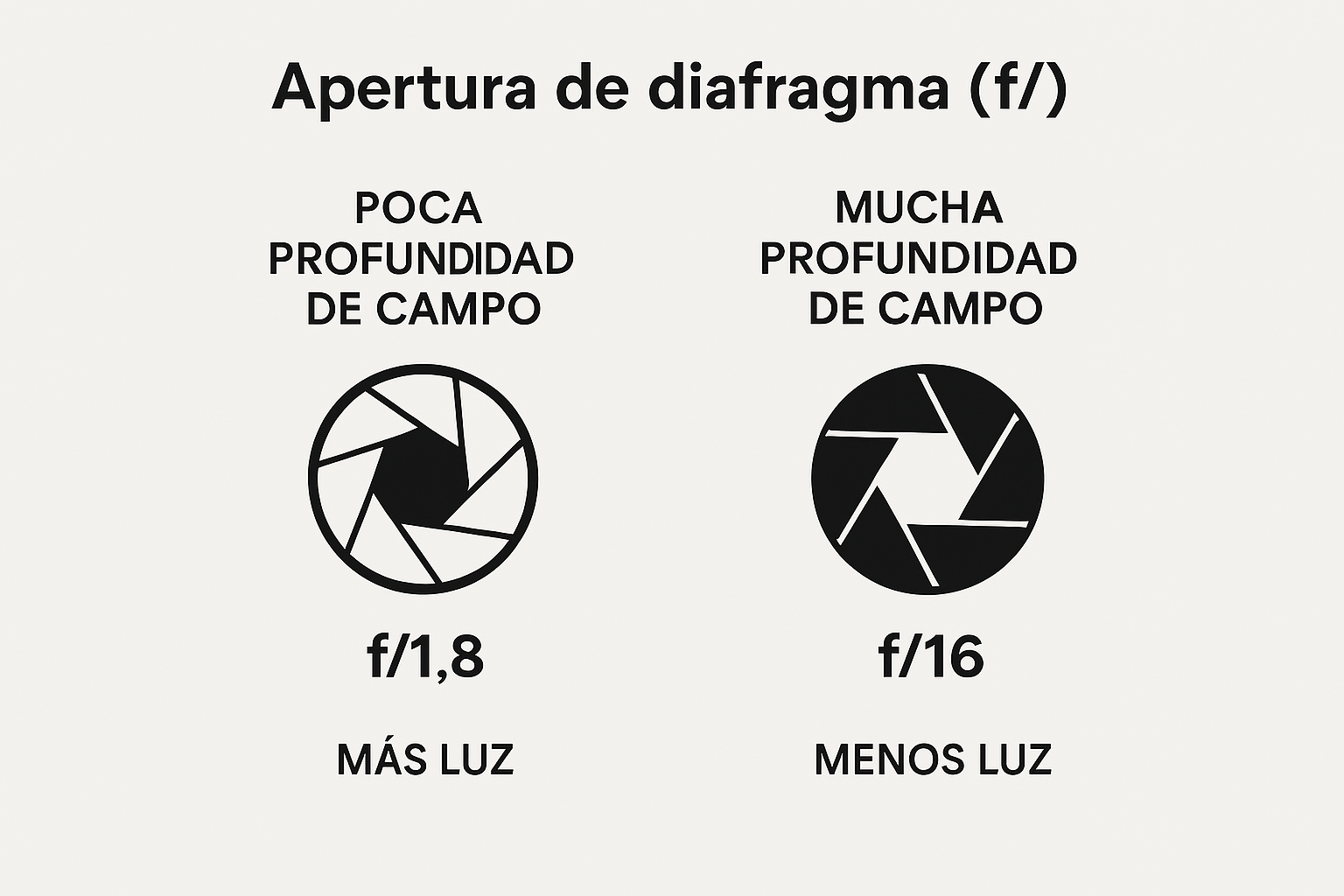 - Ejemplo: Para un retrato con fondo difuminado, elige f/1.8. Para fotografía de arquitectura donde todo debe estar enfocado, usa f/11.